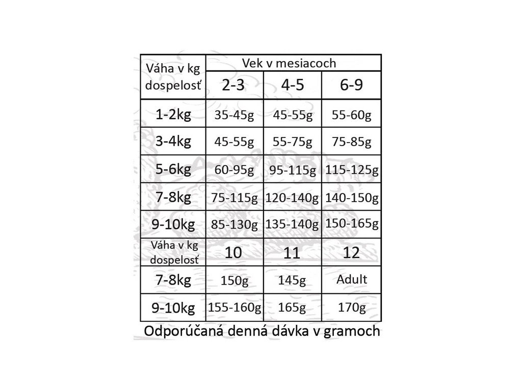 Pokyny: krmivo Fresh Farm Puppy&Junior je kompletné krmivo s obsahom všetkých živín potrebných pre zdravý vývoj Vášho šteňaťa. Nezabudnite však zabezpečiť neustály prístup k čistej čerstvej vode. Odporúčané dávkovanie môžete vidieť v tabuľke vpravo. Pri zmene krmiva odporúčame postupný prechod minimálne počas doby 2 týždňov tak, aby si organizmus psa zvykol na zmenu. Skladujte na suchom a chladnom mieste.