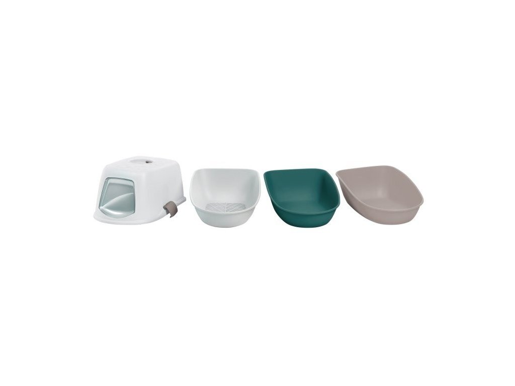 Toaleta pre mačky FURBA 59 x 39 x 42 cm, šedo/tyrkysová• toaleta obsahuje 2 základných misky, sitové vložky, kapoty, otočných dverí, klipov a rukoväte vrátane pachového filtra• na rýchle, jednoduché a hygienické čistenie odpadkového koša• rozmery (dĺžka x šírka x výška): 58,5 x 39 x 42 cm